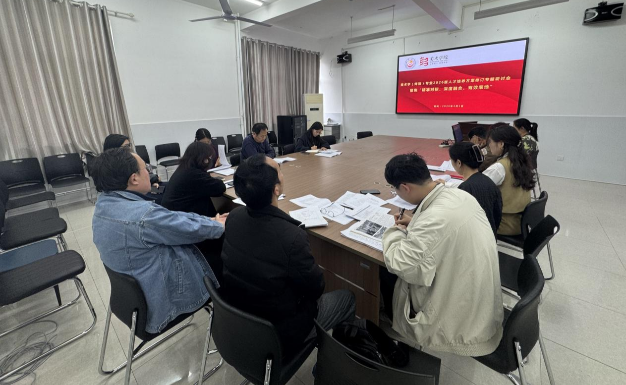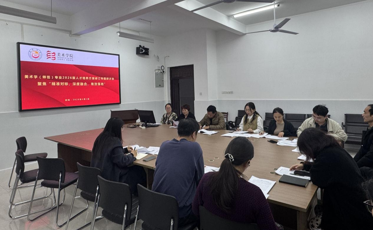 2026年4月2日,我院美术学教研室在5402组织召开美术学(师范)专业2026版人才培养方案修订专题研讨会。美术学院副院长龙社勤及美术学教研室全体教师参会,会议由美术学教研室主任胡潇文主持。